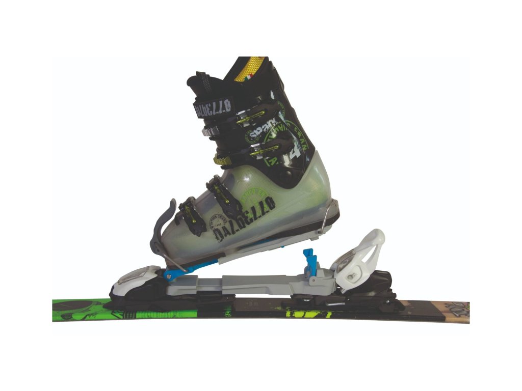 Kromě vlastních lyží, bot a vázka potřebují jen tento adaptér a pásy.