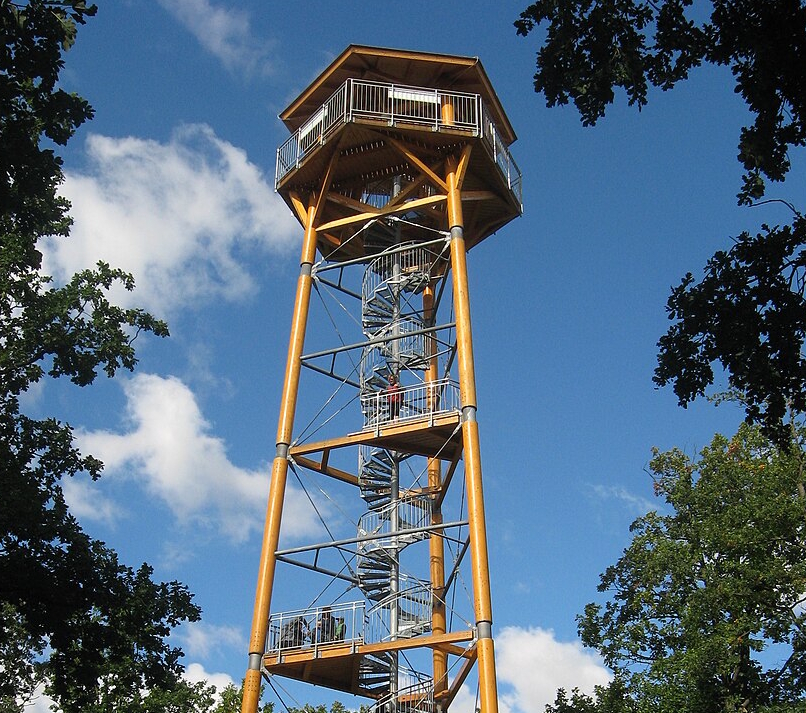 Proč sem: děti motivuje cíl, který „je vidět“ – dřevěná věž s točitými schody. Cesta z parkoviště je krátká (cca 1 km), schůdná a po dešti bývá sjízdná v pevných botách. Nahoře se hodí čepice – větrno bývá časté.