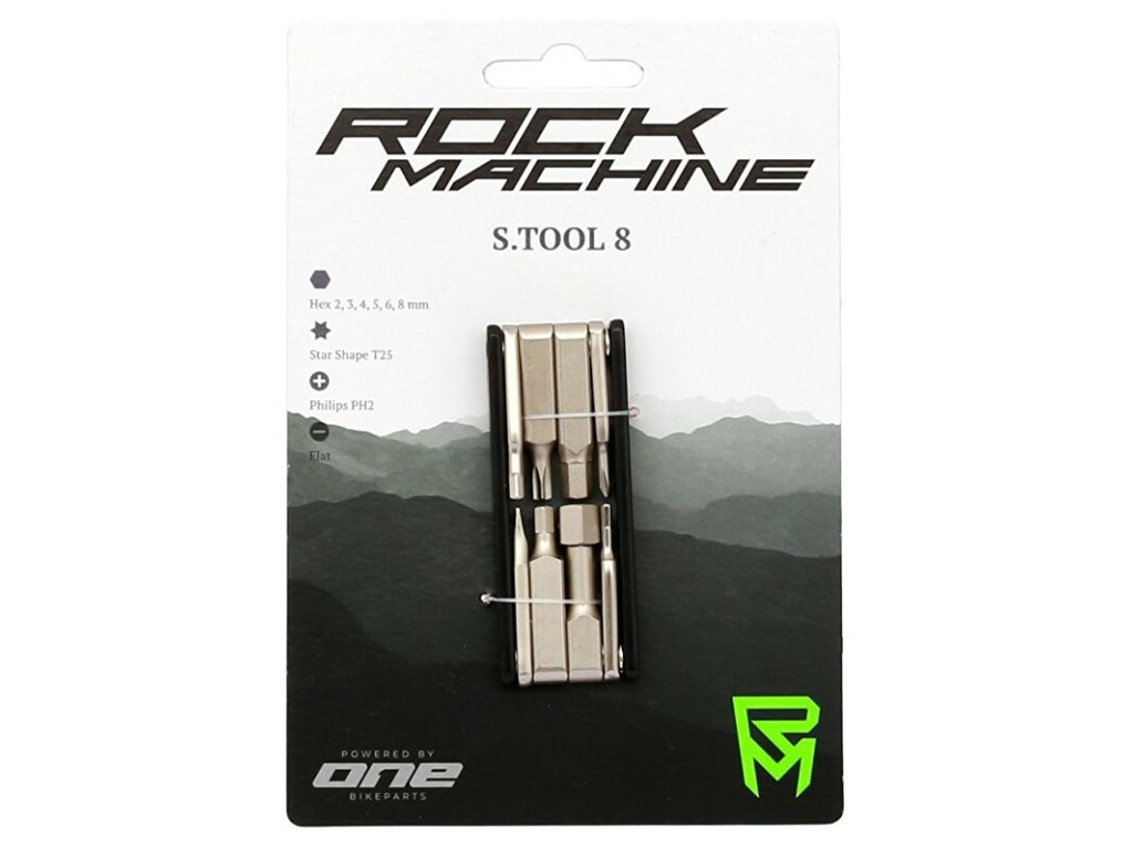Multifunkční nářadí ROCK MACHINE S.Tool 8.- obsahuje imbusové klíče 2/3/4/5/6/8 mm, torx T25, plochý a křížový šroubovák PZ2- velmi odolný materiál CR-V