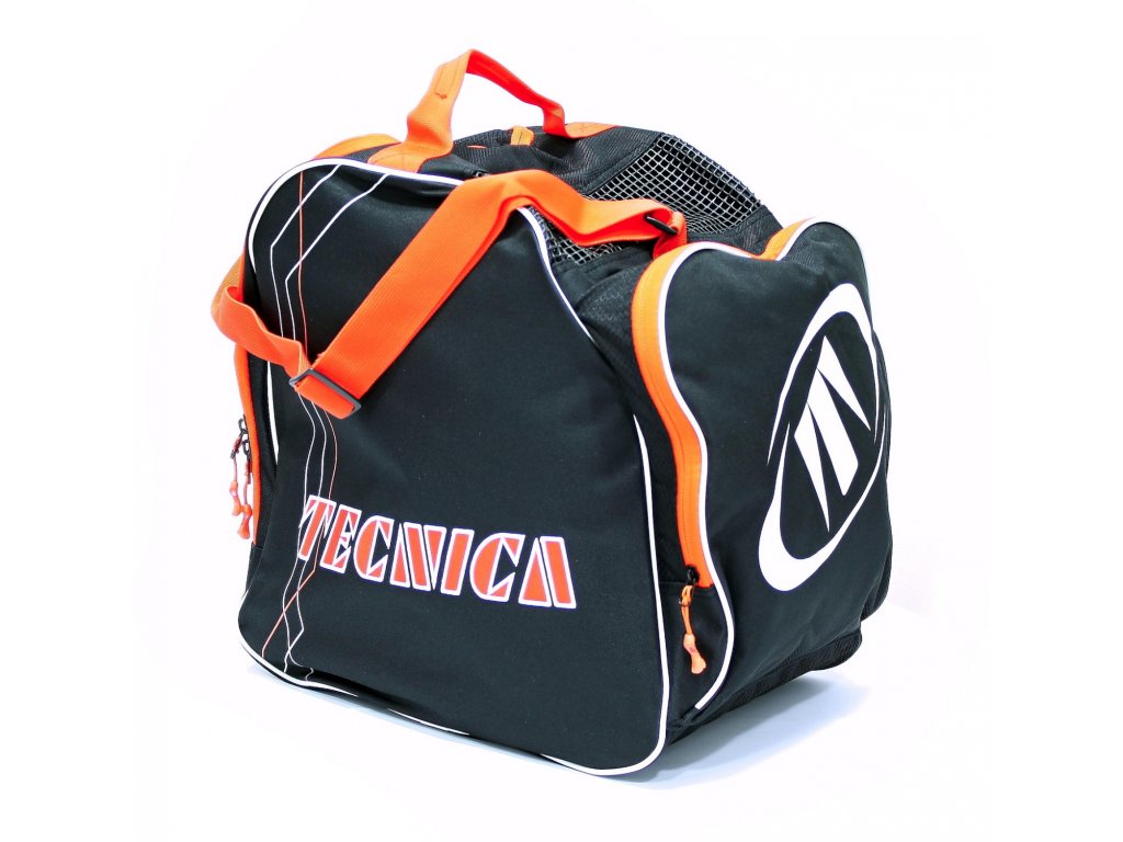 Černo - oranžová taška na lyžařské boty s nastavitelným ramenním popruhem.